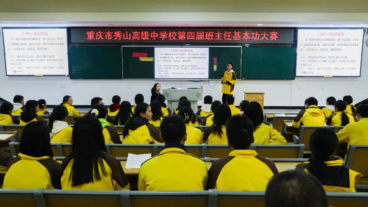 为深入贯彻落实习近平总书记关于教育的重要论述,切实落实立德树人根本任务,着力锻造一支政治素质过硬、育人能力精湛的班主任队伍,11月24日,我校第四届班主任基本功大赛在阶梯教室一成功举行。来自各年级的6位班主任代表同台竞技,呈现了6堂主题鲜明、内涵深刻的高质量主题班会课。我校副校长罗云东、德育处主任杨力、德育处副主任唐福玖出席活动。本次大赛由德育处副主任梁静主持,全校班主任及秀山县黄鹏程班主任工作室成员全程观摩。